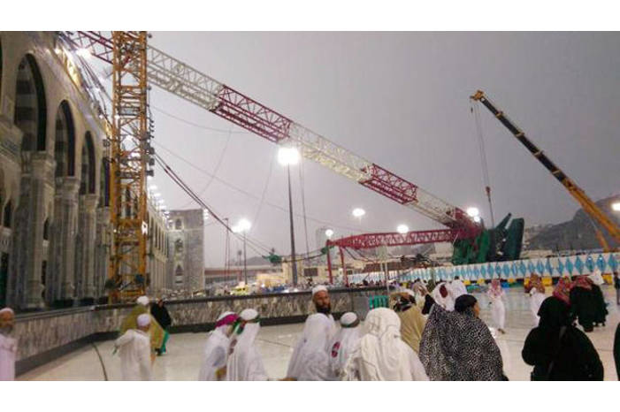 وأضاف:'تباشر فرق العاصمة المقدسة الآن حادثة سقوط رافعة في الحرم المكي'.