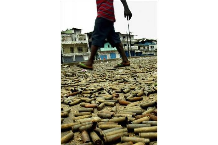 وتُظهر الصورة أحد الأشخاص يمشي على بقايا الرصاص التي أطلقت، حيث امتلأ بها الشارع.